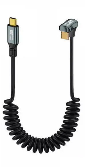 Stretch Coiled USB-C USB4 Cable 20Gbps 100W 8K Type-C Opposite Back Angled Male to Male Cable Power & Data for Laptop Keyboard Tablet