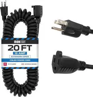 Iron Forge Cable SJEOW Black Outdoor Coiled Extension Cord 11.5 ft, 14/3, 15 Amp Oil Resistant & Flame Retardant 3 Prong Coiled Wire for Outdoor & Indoor