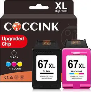 COCCINK 67XL Ink Cartridge for DeskJet 2752e 2755e 2855e 2842e 2852e 4133e 4155e 4158e Envy 6000 6020e 6055e 6065e Printer Remanufactured for HP 67 XL Black and Color Combo Pack