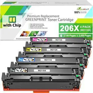 GREENPRINT Compatible Toner Cartridges 206X ( 206A ) with CHIP 4 Colors Set High Yield for M255dw M255nw MFP M282nw M283cdw M283fdw M283fdn Printer W2110X W2111X W2112X W2113X ( BK/C/M/Y )
