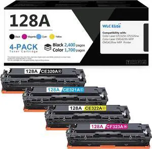 128A Toner Cartridge High Yield 4 Pack Replacement for HP 128A CE320A CE321A CE322A CE323A Toner Cartridge Color Laser CP1525n CP1525nw CM1415fn MFP CM1415fnw MFP Printer (Black Cyan Yellow Magenta)