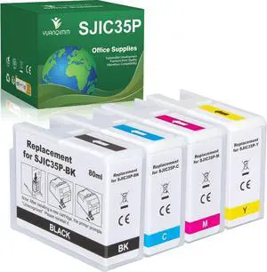 SJIC35P Ink Cartridge Remanufactured Replacement for SJIC35P-BK SJIC35P-C SJIC35P-M SJIC35P-Y with ColorWorks CW-C6000A C6500A C6000AU C6500AU C6000P C6500P C6000PU C6500PU Color Inkjet Label Printer