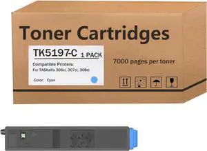 TK-5197 (TK5197) Compatible Toner Cartridges for Kyocera TK-5197K TK-5197Y TK-5197M TK-5197C for TASKalfa 306ci 307ci 308ci Printers, High Yeild Cyan 1 Pack