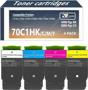 CS310 Compatible for Lexmark CS310 70C1HK0 70C1HC0 70C1HM0 70C1HY0 Toner Cartridges for 310n 310dn 410dn 410dtn 410n 510de 510dte Printers, High Yield (4000 Pgs) 1 Set