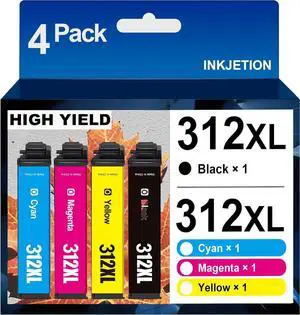 312XL Ink Cartridges Combo Pack Replacement (4-Pack, B/C/M/Y) Compatible 312XL 312 Ink Cartridges Remanufactured for Epson Expression Photo XP-15000 XP-8700 XP-8600 XP-8500 Inkjet Printers