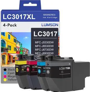 LC3017 XL Ink (BK/C/M/Y) High Yield Color Ink Cartridges 4-Pack (1 Each LC3017BK, LC3017C, LC3017M, LC3017Y) - LC3017 Ink Cartridge Replacement for Brother MFC-J5330DW MFC-J6530DW MFC-J6530DW Printer