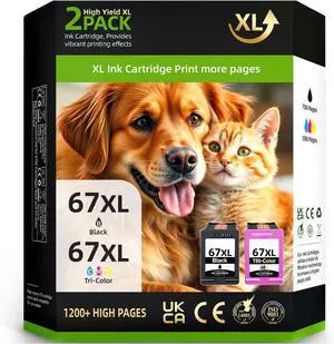 Ink 67 & 67XL Printer Ink - Black Color Combo Pack for 67 Ink Cartridges, 67XL Ink, DeskJet 2855e 2755e 2700 2700e 2800e 4155e 4255e 2827e 4100e 4227e, Envy 6055e 6000 6400 6455e Printer