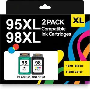 95 98 95xl 98xl High Yield Ink Cartridge Replacement for C8766W C9364W Compatible for Officejet 100 150 6310 PhotoSmart C4150 C4180 C4580 2575 8050 Deskjet 460 5940 Printers (1 Black 1 Tri-color)