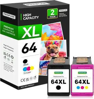 64XL Ink Cartridges Black and Color Replacements for HP 64XL Ink Cartridge Combo Pack HP 64 Ink for Envy Photo 7855 7858 7155 7120 7800 6252 6255 7158 7100 7164 Printer (2 Pack)