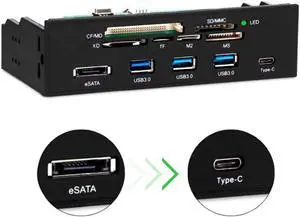 Multi-Function USB 3.0 Hub eSATA SATA Port Internal Card Reader PC Dashboard Media Front Panel Audio for SD MS CF TF M2 MMC Memory Cards Fits 5.25" Bay