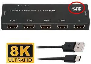 HDMI Splitter 8K 60hz Ultra-HD Converter Compatible 2.1 Switch 1-IN-4-OUT 48Gbps UHD Hub Support HDCP SST Extended 4K@120hz 3.5mm Audio