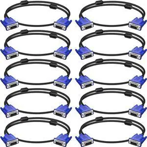 VGA to VGA Monitor Cable 3 Feet Male to Male Computer Cord for TV Computer Projector - 3 Feet (10 Pack)