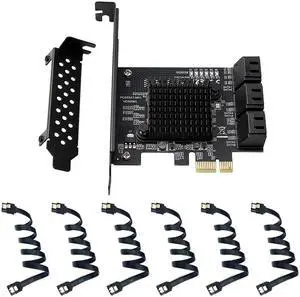 6 Ports SATA Card Marvell 88SE9215 chip SATA 3.0 to PCIe Expansion Card PCI Express SATA Adapter SATA3 Converter with Data Cable