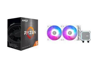 AMD Ryzen 5 5500 - Ryzen 5 5000 Series Cezanne (Zen 3) 6-Core 3.6 GHz Socket AM4 65W No Integrated Graphics Desktop CPU Processor - 100-100000457BOX MSI MAG Coreliquid A13 240 White - AIO ARGB Liquid Cooling - 240mm Radiator - Dual 120mm AR