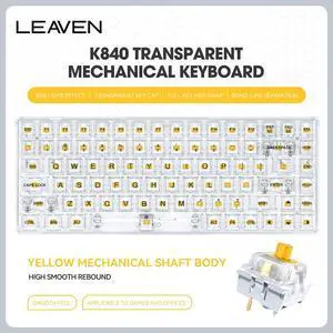K840 RGB Gaming Keyboard 84-Key Transparent Mechanical Layout USB-C Interface Hot Swappable Programmable OEM Customizable White-yellow
