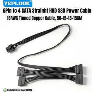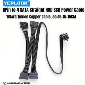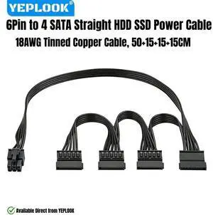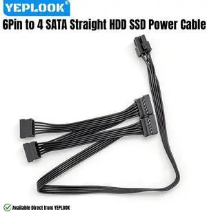 YEPLOOK 6Pin to 4 SATA Straight for Corsair HX-i, HDD SSD Power Cable for HX1500i, HX1200i, HX1000i, HX850i, HX750i, HX650i PSUs