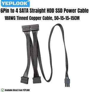 YEPLOOK 6Pin to 4x SATA Straight, SSD HDD Power Cable for Corsair CX750, CX650, CX600, CX550, CX500, CX450, CX430 Modular Powers