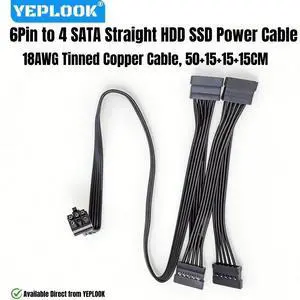 YEPLOOK 6Pin to 4 SATA Straight 18AWG, HDD SSD Power Cable for Corsair TX850M, TX750M, TX650M, TX550M TX-M Type 3 Modular Powers