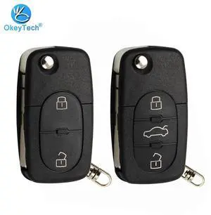 OkeyTech 2/3 Button Flip Folding Car Key Shell Cover Case Fob CR1620 CR2032 Battery Holder HAA For Audi TT A2 A4 A6 A8 Quattro