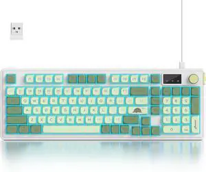 Fogruaden 96% Wireless Green Keyboard with Number Pad and Knob, Mechanical Feel, RGB Quiet Matcha Membrane Gaming Keyboard, Spill-Resistant, 3-Modes USB Rechargeable Silent Creamy Keyboard for Win/Mac