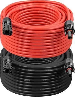 XRDS -RF 10AWG Solar Extension Cable 50FT 2 Pack Red & Black PV Wire with Solar Connectors, 84-Strand Tinned Copper, Dual XLPE Insulated, Outdoor UV-Resistant Cable for RV, Inverter, Battery