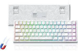 ATTACK SHARK X75 Hotswap Mechanical Gaming Keyboard with USB C Coiled Cable,TKL Tactile Switch,RGB LED,Gasket Mounted,Custom OSA Profile Clear Keycaps for PS4 PS5 Xbox Mac PC Gamer(White,Outemu)
