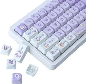 PBT Keycaps 142 Keys Purple Dream Bunny Keycap Dye-Sublimation Cute Keycap Mao Profile Cat Shape Custom Keycaps for Cherry Gateron MX Swithes Mechanical Keyboards