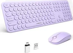 Wireless Keyboard and Mouse, XTREMTEC Cute Keyboard Retro Round Keycap - 2.4GHz Ultra-Slim Quiet Aesthetic Keyboard for Mac Computer Laptop PC Desktops (Purple-Lavender)