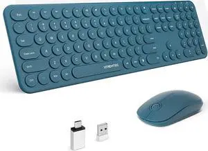 Wireless Keyboard and Mouse, XTREMTEC Cute Keyboard Retro Round Keycap - 2.4GHz Ultra-Slim Quiet Aesthetic Keyboard for Mac Computer Laptop PC Desktops (Blue-Navy)