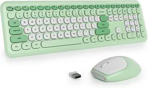 Wireless Keyboard Mouse Set,MOFII 104 Round Keys Lovely Retro Cute Colorful Computer Typewriter Keyboard and Mouse for PC/Mac/Laptop/Tablet/Computer/Windows Green