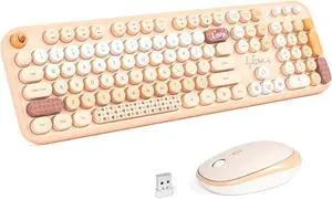 YYOYY Wireless Keyboard and Mouse Combo, 104 Keys Punk Keyboard, Cute Desktop Game Keyboard Mouse Kit, for Girls, Retro Typewriter Style, for Home/Office/Work/Gaming/Study(Apricot)