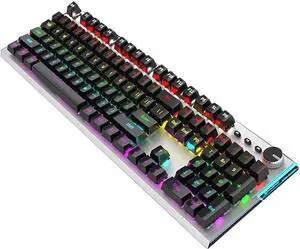 Wired Gaming Keyboard, Mechanical Keypad, USB Interface, 13 Colors Cool Backlight Effect, for Home Office PC Game White(Black)