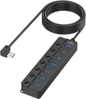 10 Port USB 3.0 Hub, 60W USB Hub with Individual LED On/Off Switches, 33.5inch Long Cable & 12V / 5A Power Adapter, Fast Data Transfer USB Splitter for Mac, PC, Laptop, Camera (US Plug)