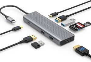 USB Hub, TOTU 9 in 1 USB C Docking Station for Mac OS & Windows (4K HDMI, 2*USB 3.0 Type-A, USB-C Data Transfer Port, 2*USB 2.0 Type-A, SD/TF, USB C PD)