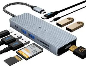 oditton 9 in 1 USB C HUB, Comprehensive Docking Station Featuring 4K@30Hz HDMI, 3 x USB 3.0, USB C 3.0 Data Transfer, USB 2.0, 100W PD, SD/TF Card Reader, Compatible with Laptop and More