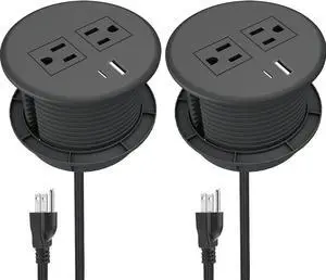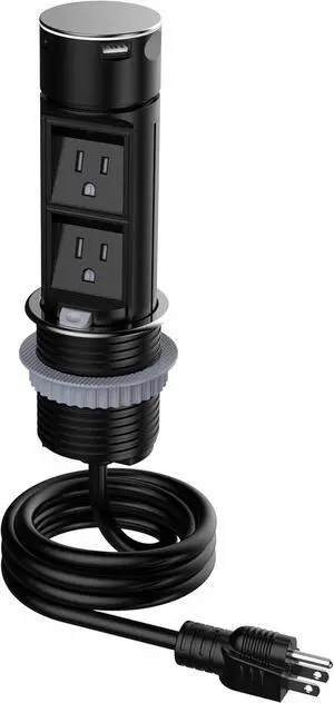 ANNQUAN 2 inch Pop Up Outlet for Countertop with 20W USB Ports,2 Outlets Tamper Resistant,Splashproof Pop Up Socket,Desk Power Grommet for Home Office Kitchen 3FT Cord