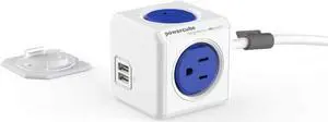 POWERCUBE EXTENTED USB - 4 OUTLETS 2 USB w/Surge - Blue 5' Cord CETL