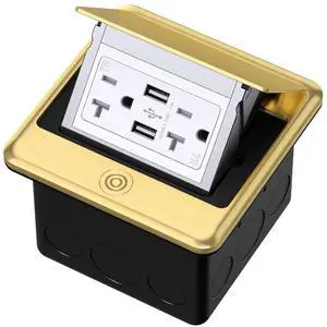 KYHSHJ Professional Pop-up Floor Power Outlet Box with USB 5V/4.8A Socket, 20 Amps Interference-Resistant Socket, Corrosion-Resistant Hardware, ETL Certified, Brass