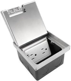 Diydeg Recessed Floor Electrical Outlet Kit, Recessed Floor Outlet Box Flat Concealed 2 Prong 6 Holes Receptacle Outlet Cover Box Silver for Tile Marble Carpet