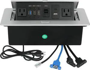 Table Pop up Power Strip Box Desktop Pop Up Outlet Recessed Multimedia Strip Socket Conference Table Power Hub Hidden Table Connection Box with Outlet Network HDMI for Office Desk (Sliver-D)