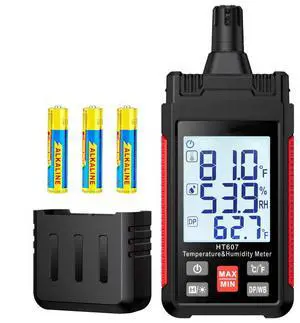 Portable 4-in-1 Digital Thermo-Hygrometer Psychrometer Mini Temperature Humidity Meter Pen Type Home Greenhouse Indoor Hygrometer with Dew Point & Wet Bulb Temperature, Max/Min, Backlight LCD Display