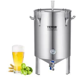 VEVOR 304 Stainless Steel Kettle, 8 GALLON Beer Brew Fermentor, Brew Bucket Fermentor for Brewing, Home Brewing Supplies with Base, Kettle Stock Pot Includes Lid, Handle, Valve, Spigot, Thermometer