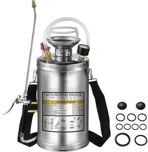 1.5Gal Stainless Steel Sprayer, Set with 16\" Wand& Handle& 3.3FT Reinforced Hose, Hand Pump Sprayer with Pressure Gauge&Safety Valve, Adjustable Nozzle Suitable for Gardening& Sanitizing