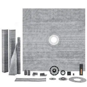 VEVOR Shower Curb Kit, 72"x72" Shower Pan Kit with 2" PVC Central Flange, 4" Stainless Steel Grate, Waterproof Shower Curb & Membrane & Strip, Shower Pan Slope Sticks Fit for Bathroom