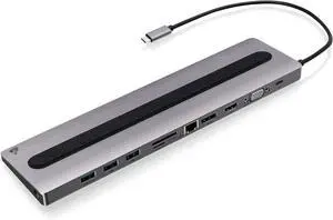 IOGEAR USB-C 8-Port Low Profile Docking Station - 4K 30Hz - 1 HDMI - 1 DisplayPort - 1 VGA - 1 Ethernet - 3 USB 3.0 A Ports - 1 USB-C 100W Charging Only - Power Adapter Not Included GUD3C02B