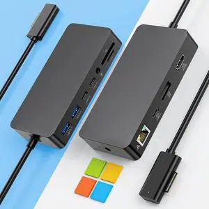 Surface Docking Station 4K60Hz Triple Display (USB-C+ DisplayPort+HDMI), 12-in-1 Surface Dock for Surface Pro 11/10/9/8/X/7/6/5/4/3, Surface Laptop, Surface Go, Book with Power Adapter