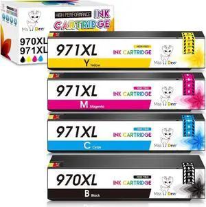 MS DEER Compatible 970XL 971XL Ink Cartridge Replacement 970 971 XL Ink Cartridge Work Officejet Pro X451dn X451dw X551dw X476dn X476dw X576dw Printer (Black Cyan Magenta Yellow) 4 Pack