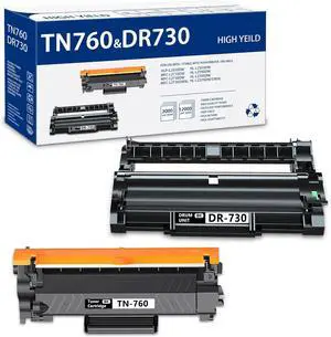 DR730 Drum Unit + TN760 Toner Cartridge 2PK Black High Yield Replacement for Brother TN760 TN-760 DR-730 DR730 for MFC-L2710DW MFC-L2750DW HL-L2370DW HL-L2350DW HL-L2390DW Printer (1Toner+1Drum)