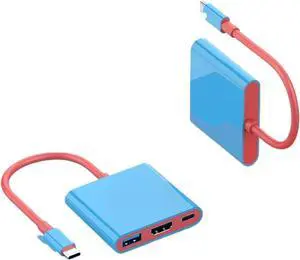 HDMI 4K Switch Dock USB 3.0 Hub Adapter C Splitter TV Portable Docking Station for Laptops PC Air Pro(Blue and red)