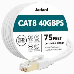 Cat8 Ethernet Cable, Outdoor&Indoor, 75 FT Heavy Duty High Speed Cat 8 LAN Network Cable, 40Gbps 2000MHz RJ45 Flat Internet Computer Patch Cord, Weatherproof S/FTP UV Resistant for Router/Modem/Gaming